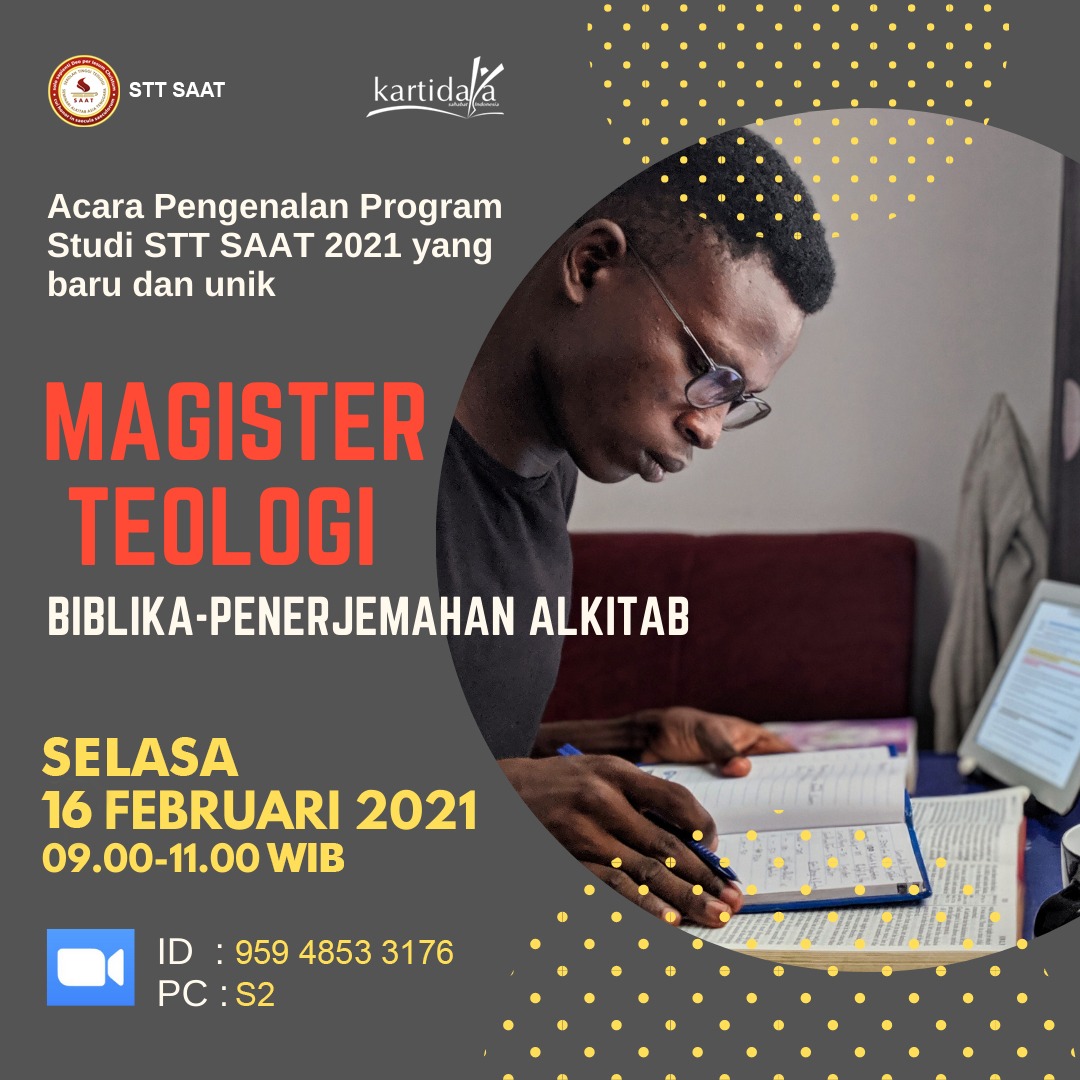 Pengenalan Program Studi STT SAAT 2021 yang baru dan unik. Magister Teologi Biblika-Penerjemahan Alkitab.